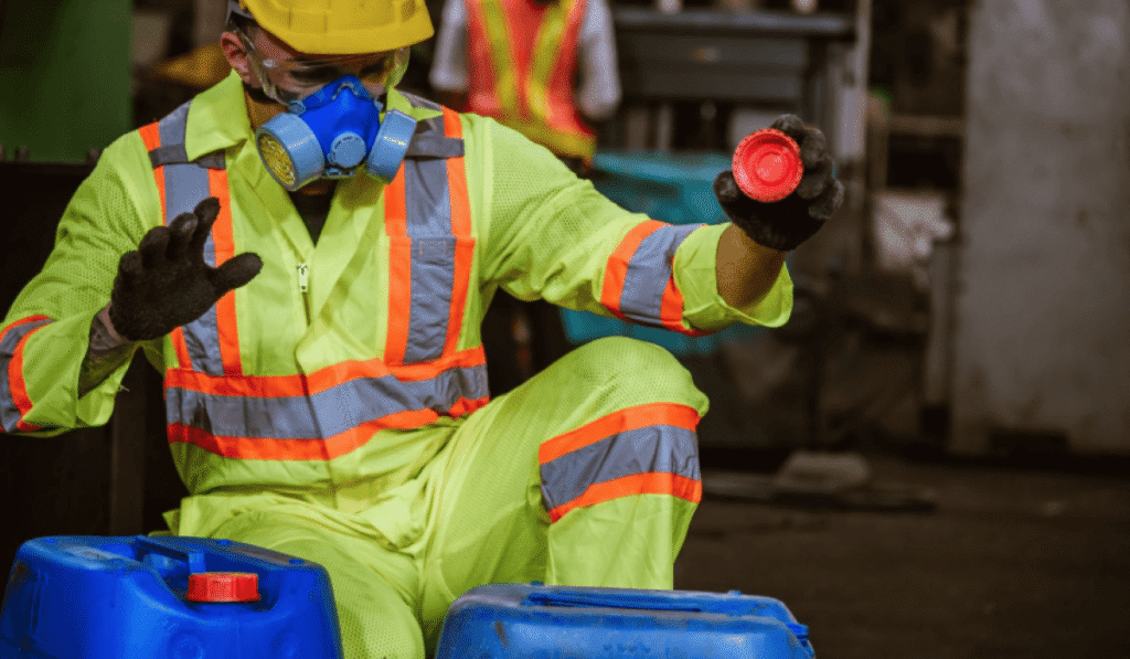 - Exemplo de vestimenta: macacões impermeáveis, aventais químicos, botas e luvas resistentes a agentes químicos;